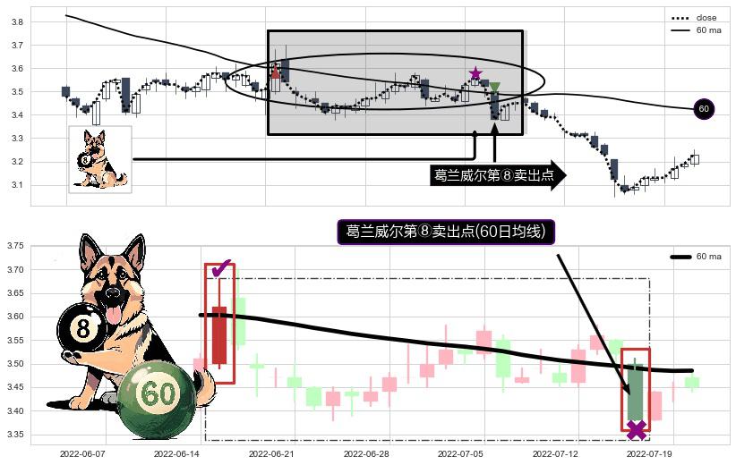 ⚀ 2022-07-15-日显现 葛兰威尔均线 60日均线 第⑧卖出点 下降趋势的中继信号,后市看跌,卖出信号