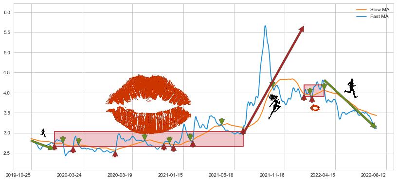 2019-12-30至2021-07-14 慢线与快线多次接触,存在上下穿越,有缠绕