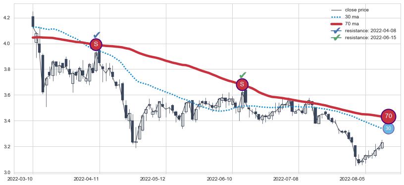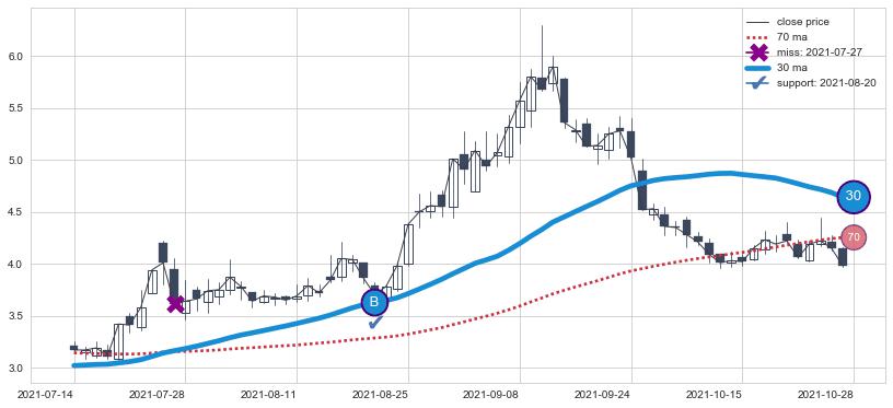 ⚂ 2022-06-15-日均线向上突破,2022-07-15-日重新下穿均线破位,均线阻力再次生效