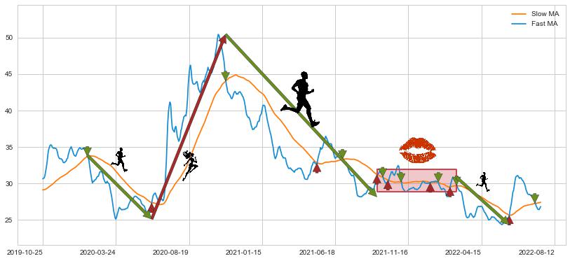 2022-02-24至2022-06-14 慢线与快线呈空头排列, 慢线与快线接触少,无缠绕