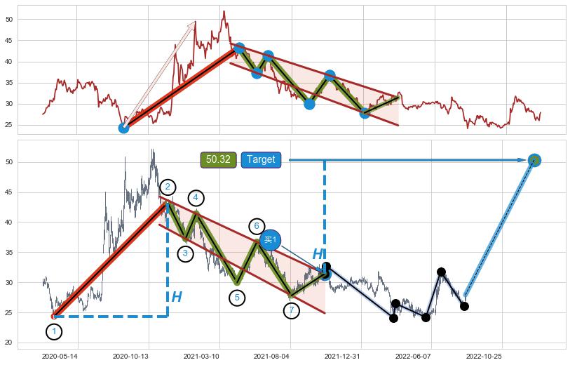 ➣ 最小中继整理涨幅→𝐇: 18.88 (𝐇旗杆的长度:旗杆起点→顶点)