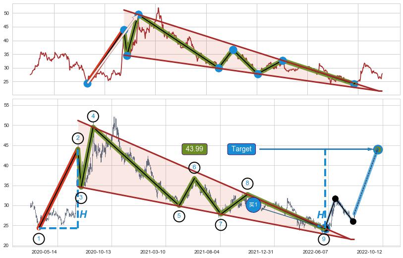 ➣ 【已确认突破】降🚩楔型 起点:2020-03-23,突破点:2022-05-27,形态共529交易日