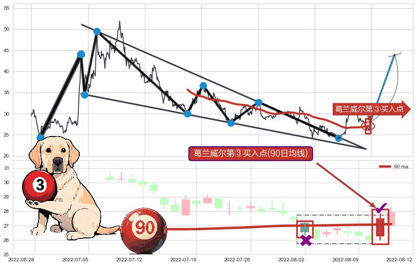 ♘ 支撑价格位26.97,可信任强度88.91%,距离最后交易2022-08-12形成的收盘价格27.91相差 -3.35%