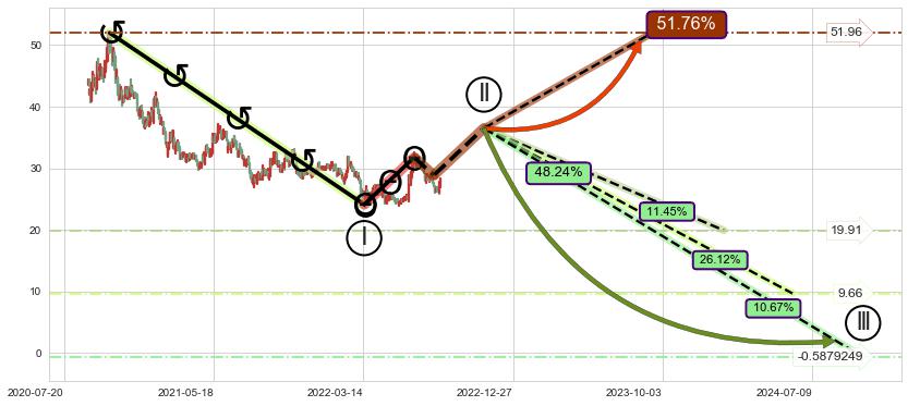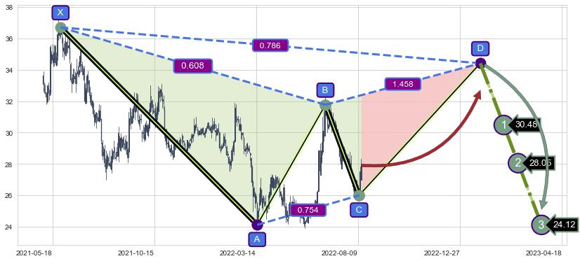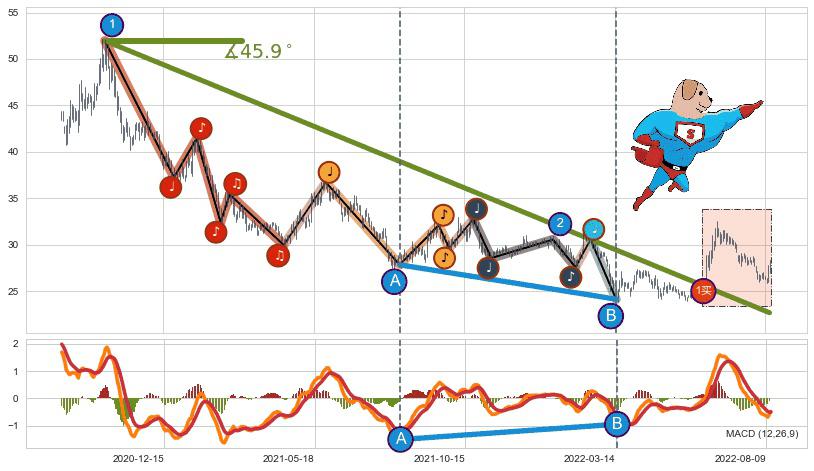 ➣ D点拟合预测价格34.41,距离最后交易收盘价格27.91相差 +23.29%