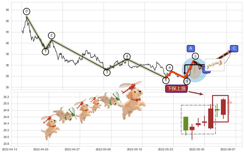 ➢ AI预测: 假定反转启动后, 第❷目标位置(2023-03-16, 28.05)