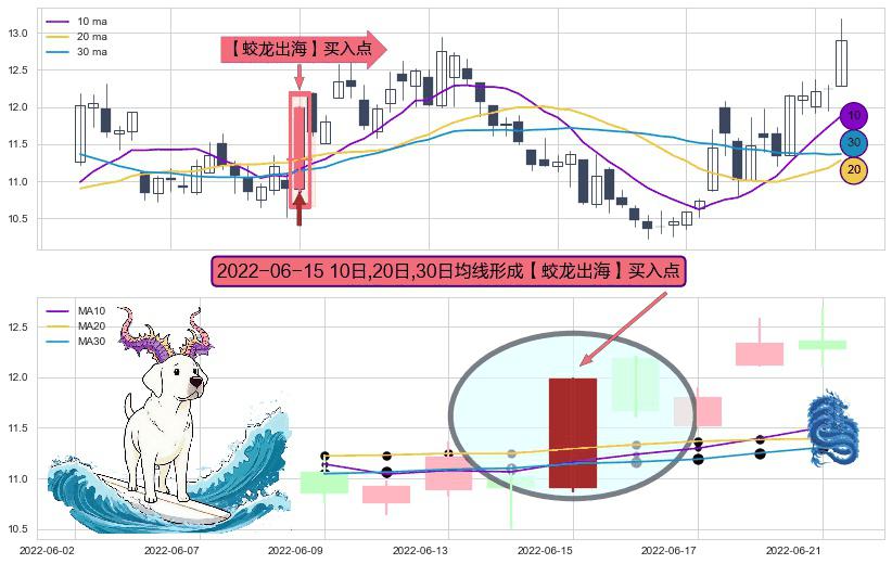 ⚀ 2022-06-15日显现 10日-20日-30日均线 【蛟龙出海】买入点 看多信号,后市看涨,买入