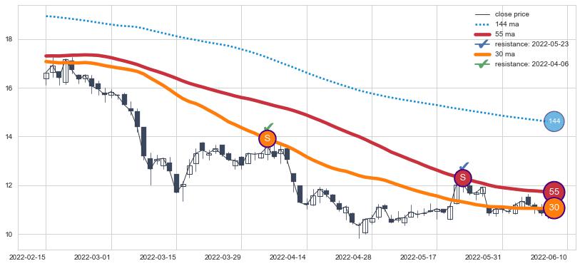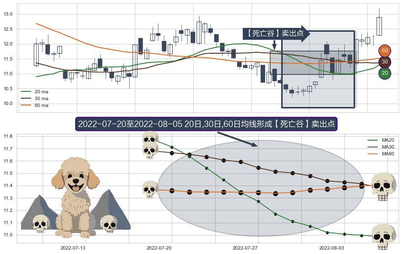 ⚀ 2022-07-21-日至2022-08-05-日显现 20日-30日-60日均线 【死亡谷】卖出点 看空信号,后市看跌,卖出
