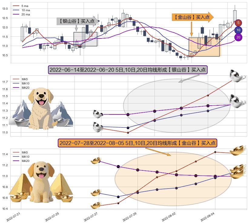 ⚃ 2022-07-29-日至2022-08-05-日显现 5日-10日-20日均线 【金山谷】买入点 其再次确认了买入信号,可靠性更强,买入