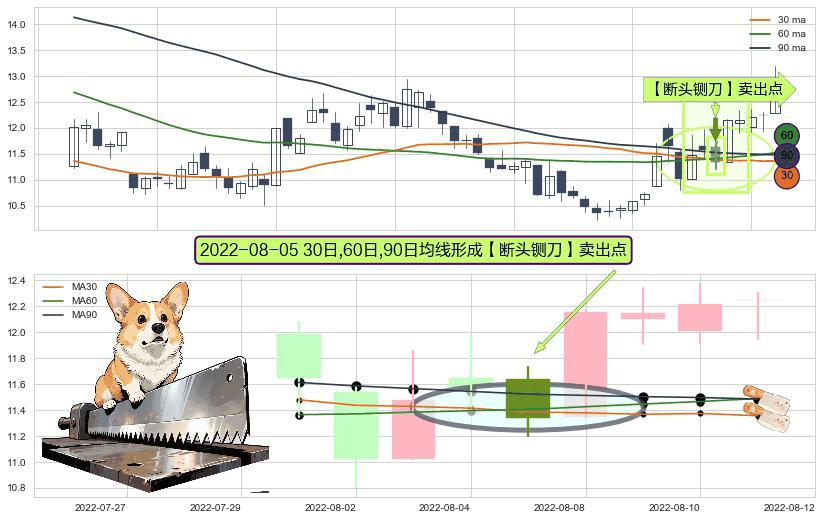⚀ 2022-08-05日显现 30日-60日-90日均线 【断头铡刀】卖出点 看空信号,后市看跌,卖出
