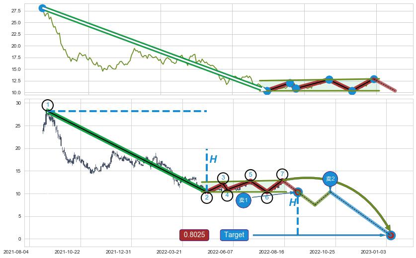 ➣ 最小中继整理跌幅→𝐇: 9.55 (𝐇旗杆的长度:旗杆起点→顶点)