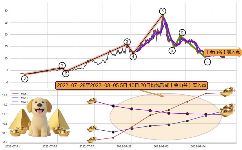 | 8 🅚:早晨之星(黎明之星) ➕ 🌊:波浪理论上涨5浪延续:猜想C点强支撑小回调终止,猜想保持上涨5浪方向拉升(均值回复后大周期继续趋势跟踪) ☞ 看多信号 ⇥ 【🅚线】交织【图形】⇥ 综合量化分数: 54 | > |