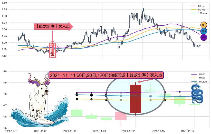 形态多维评估: ⚀ 2021-11-11日显现 60日-90日-120日均线 【蛟龙出海】买入点 看多信号,后市看涨,买入