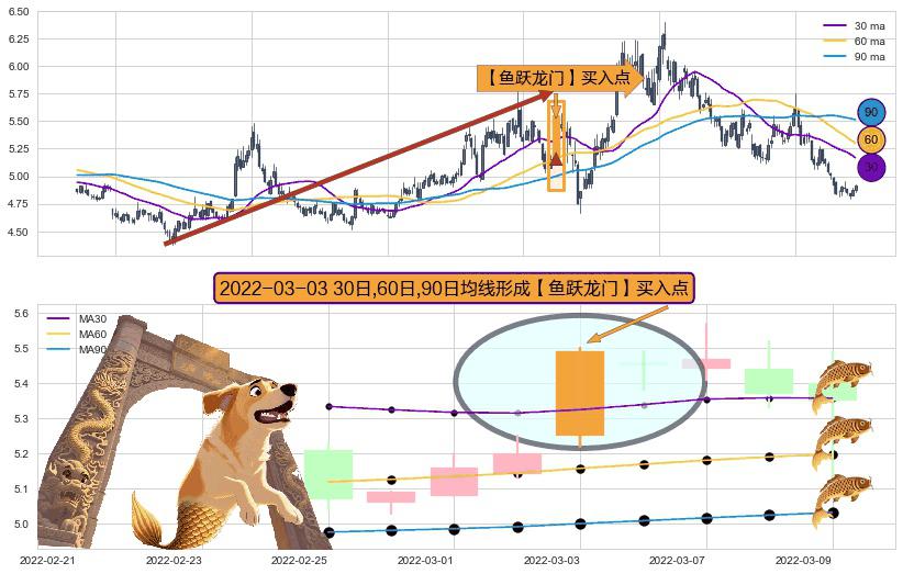 形态多维评估: ⚀ 2022-03-03日显现 30日-60日-90日均线 【鱼跃龙门】买入点 看多信号,后市看涨,买入