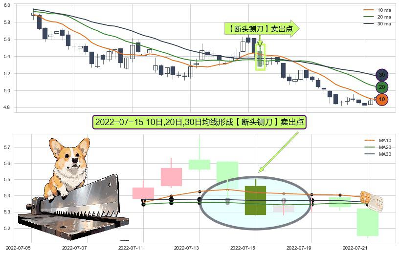 形态多维评估: ⚀ 2022-07-15日显现 10日-20日-30日均线 【断头铡刀】卖出点 看空信号,后市看跌,卖出
