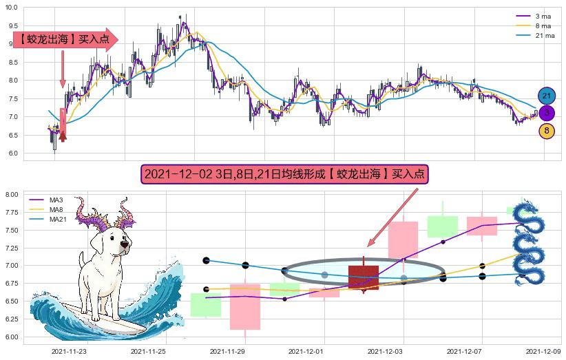 ⚀ 2021-12-02日显现 3日-8日-21日均线 【蛟龙出海】买入点 看多信号,后市看涨,买入