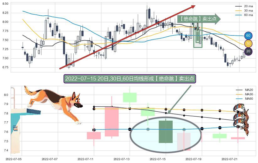 ⚀ 2022-07-15日显现 20日-30日-60日均线 【绝命跳】卖出点 看空信号,后市看跌,卖出