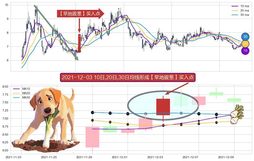 ⚀ 2021-12-03日显现 10日-20日-30日均线 【旱地拔葱】买入点 看多信号,后市看涨,买入
