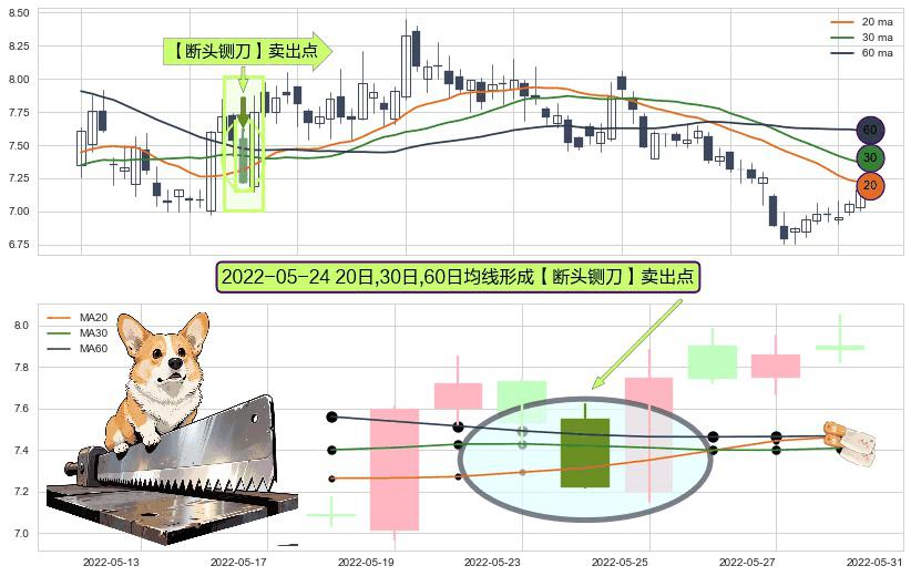 ⚀ 2022-05-24日显现 20日-30日-60日均线 【断头铡刀】卖出点 看空信号,后市看跌,卖出