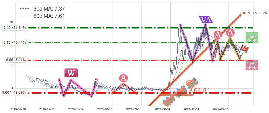 ♞ 30日均线:7.37,60日均线:7.61→ 快线<慢线