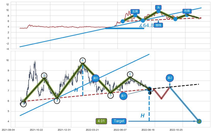 ➣ 最小反转跌幅→𝐇: 3.153 (头部与颈线垂直距离)