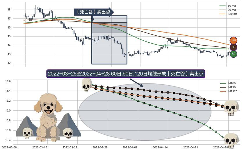形态多维评估: ⚀ 2022-03-28-日至2022-04-28-日显现 60日-90日-120日均线 【死亡谷】卖出点 看空信号,后市看跌,卖出