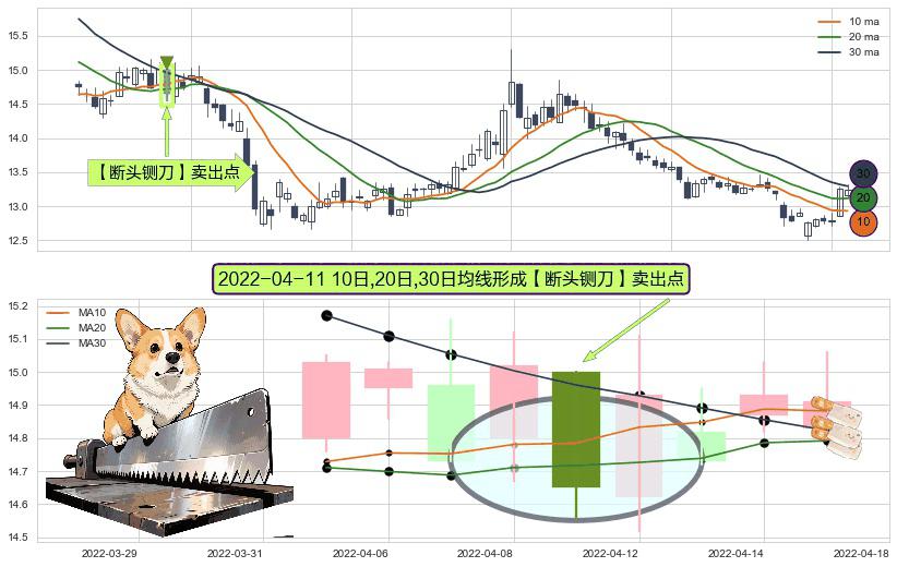 形态多维评估: ⚀ 2022-04-11日显现 10日-20日-30日均线 【断头铡刀】卖出点 看空信号,后市看跌,卖出