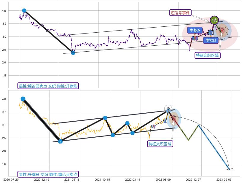 ➢ 【中枢A】:2022-05-10-2022-05-26,中枢由5笔构成,共13交易日, ZG=2.970, ZD=2.880
