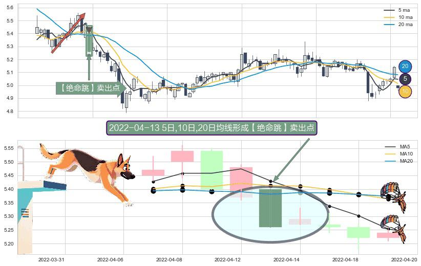 ⚀ 2022-04-13日显现 5日-10日-20日均线 【绝命跳】卖出点 看空信号,后市看跌,卖出