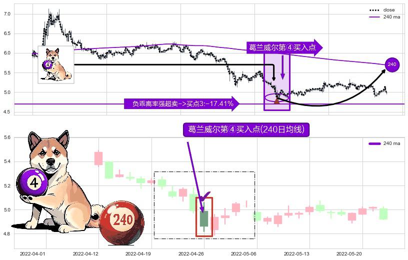 ⚀ 2022-04-26-日显现 葛兰威尔均线 240日均线 第④买入点 下降趋势均值回复的短线反弹信号,后市看涨,买进信号