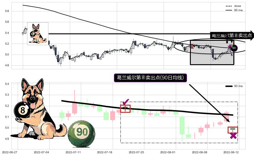 ⚀ 2022-08-12-日显现 葛兰威尔均线 90日均线 第⑧卖出点 下降趋势的中继信号,后市看跌,卖出信号