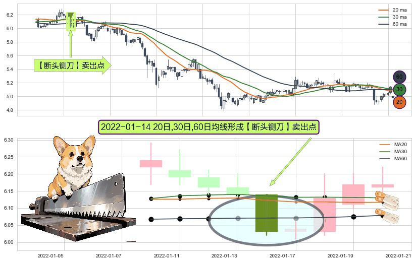 ⚀ 2022-01-14日显现 20日-30日-60日均线 【断头铡刀】卖出点 看空信号,后市看跌,卖出