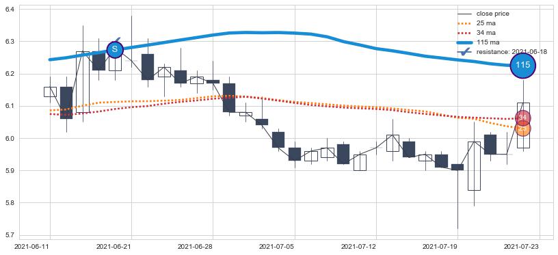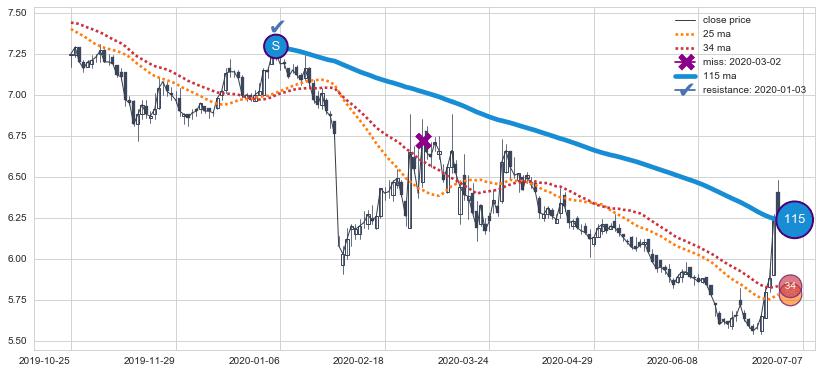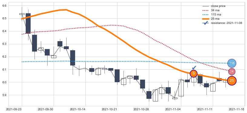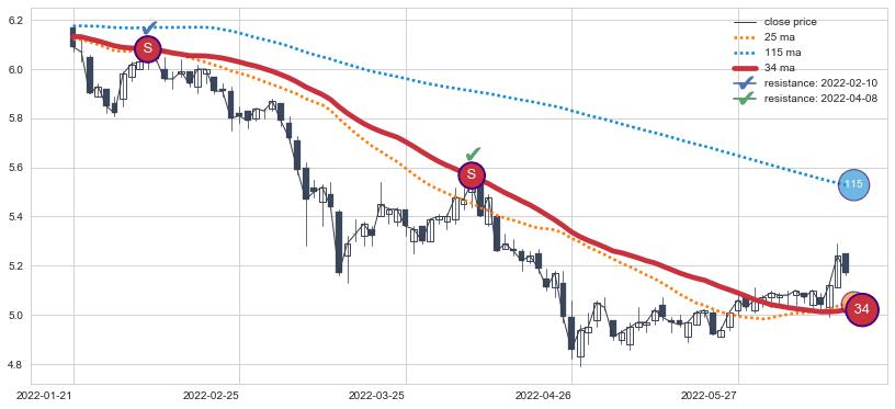⚂ 2022-07-20-日均线向上突破,2022-08-12-日重新下穿均线破位,均线阻力再次生效