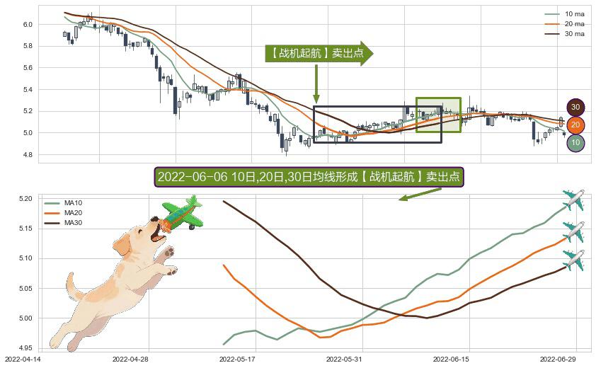 ⚀ 2022-05-12日-2022-06-28日显现 10日-20日-30日均线 【战机起航】卖出点 看空信号,后市看跌,卖出