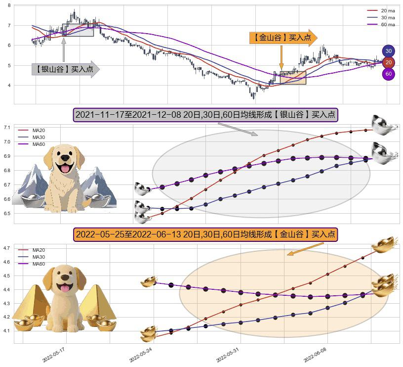 ⚀ 2022-05-26-日至2022-06-13-日显现 20日-30日-60日均线 【金山谷】买入点 其再次确认了买入信号,可靠性更强,买入