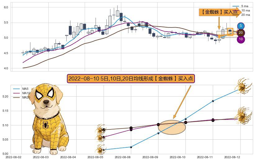 ⚀ 2022-08-10日显现 5日-10日-20日均线 【金蜘蛛】买入点 看多信号,后市看涨,买入