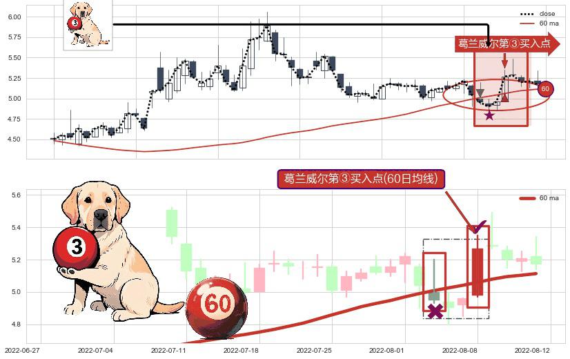 ⚀ 2022-08-08-日显现 葛兰威尔均线 60日均线 第③买入点 上升趋势的中继信号,后市看涨,买进信号