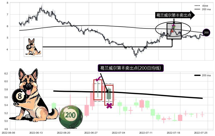 ⚀ 2022-06-29-日显现 葛兰威尔均线 200日均线 第⑧卖出点 下降趋势的中继信号,后市看跌,卖出信号