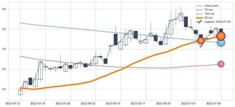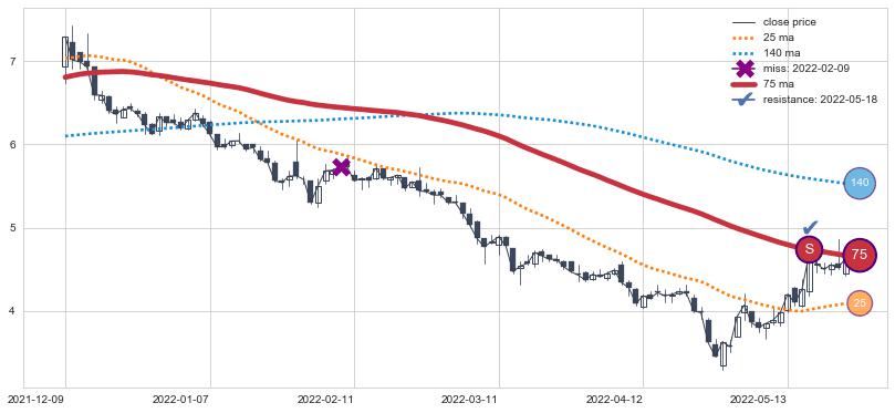 ⚂ 2022-06-27-日均线向上突破,2022-06-29-日重新下穿均线破位,均线阻力再次生效
