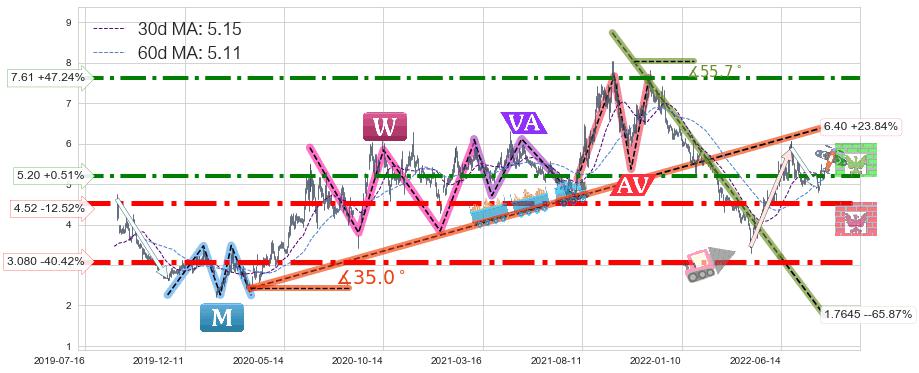 ♘ 阻力价格位7.61,可信任强度73.51%,距离最后交易2022-08-12形成的收盘价格5.17相差 +47.24%