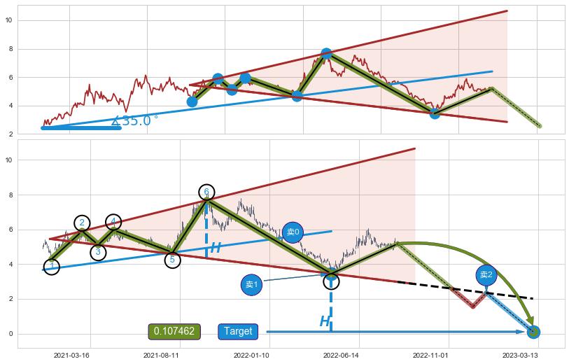 ➣ AI预测: 假定反转启动后, 第❶目标位置(2025-06-23, 3.344)