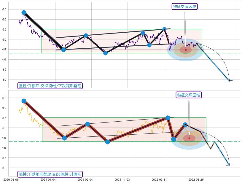 | 3 🅚:【断头铡刀】卖出点 ➕ 📐:升旗形下行突破支撑位破位, 猜想持续下沉下跌,被突破的支撑位已变为阻力位 ☞ 看空信号 ⇥ 【均线】交织【图形】⇥ 综合量化分数: 37 | > |