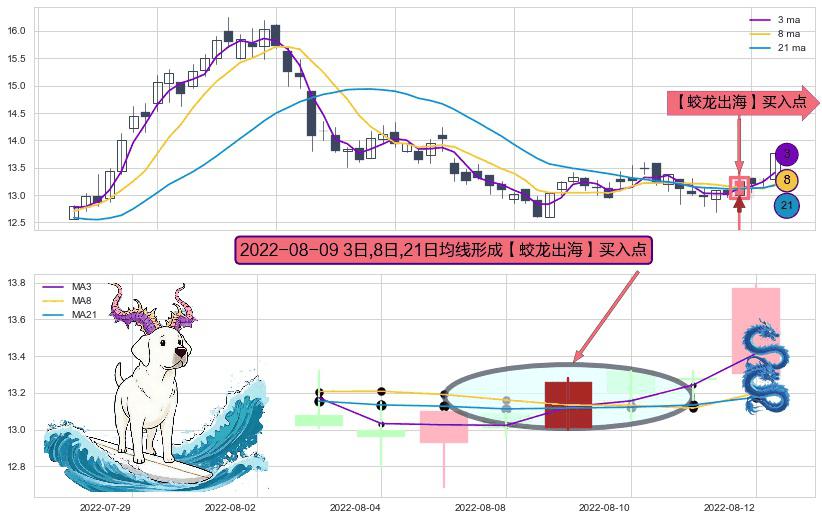 形态多维评估: ⚀ 2022-08-09日显现 3日-8日-21日均线 【蛟龙出海】买入点 看多信号,后市看涨,买入