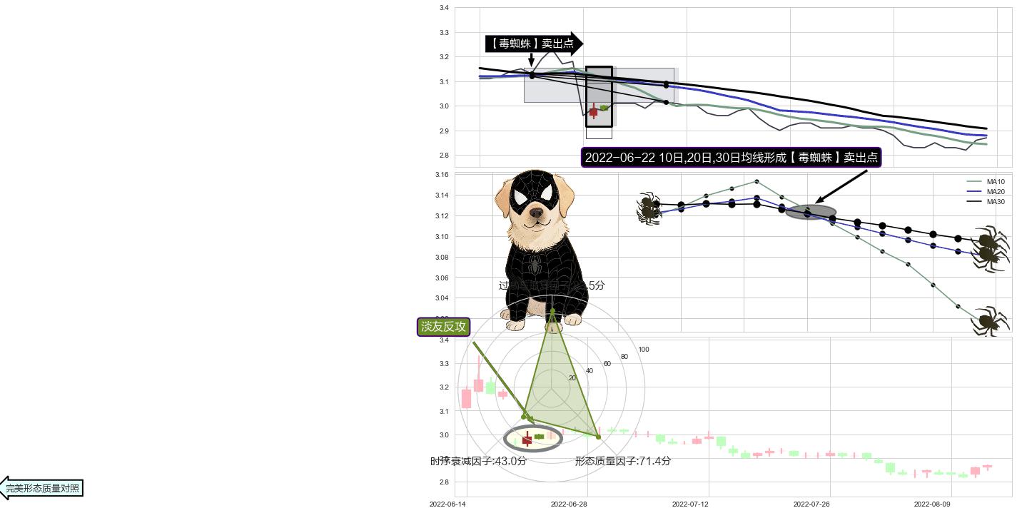 | 2 🅚:射击之星形态 ➕ 🎢:【毒蜘蛛】卖出点均线组合卖出点信号形成后,猜想三条均线周期内的交易者都看空后市,持续下跌 ☞ 看空信号 ⇥ 【均线】交织【🅚线】⇥ 综合量化分数: 35 | > |