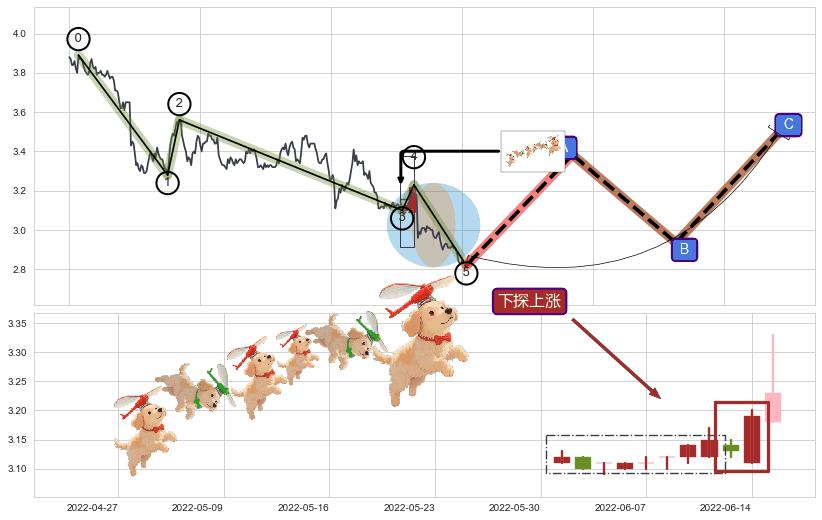 | 5 🅚:上涨两颗星 | 上涨三颗星 ➕ 🌊:波浪理论猜想下跌浪5已形成,猜想后续形成abc反弹上涨(均值回复) ☞ 看多信号 ⇥ 【🅚线】交织【图形】⇥ 综合量化分数: 51 | > |