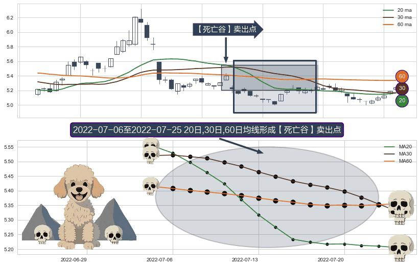 ⚀ 2022-07-07-日至2022-07-25-日显现 20日-30日-60日均线 【死亡谷】卖出点 看空信号,后市看跌,卖出