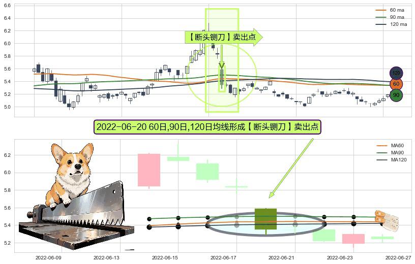 ⚀ 2022-06-20日显现 60日-90日-120日均线 【断头铡刀】卖出点 看空信号,后市看跌,卖出