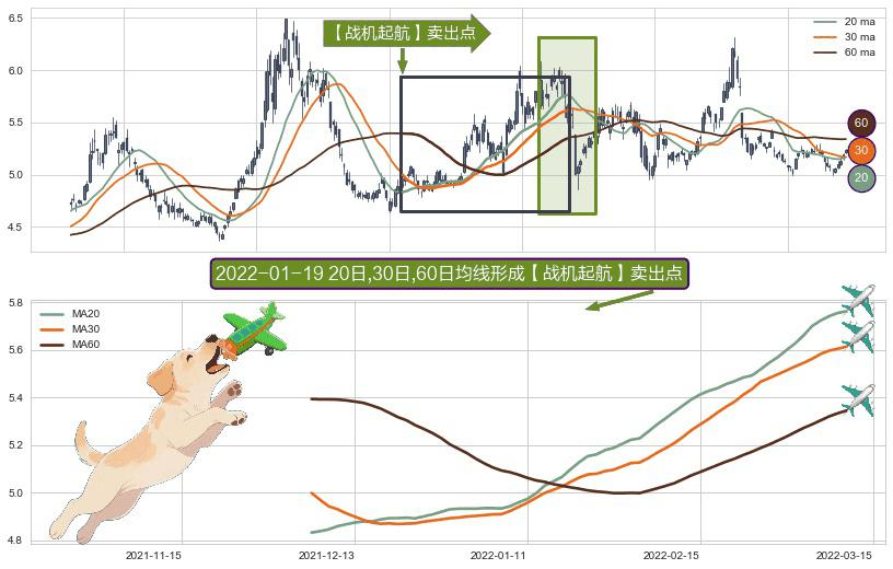 ⚀ 2021-12-06日-2022-03-10日显现 20日-30日-60日均线 【战机起航】卖出点 看空信号,后市看跌,卖出