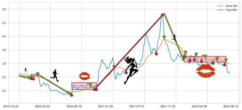 2022-01-07至2022-07-28 慢线与快线多次接触,存在上下穿越,有缠绕