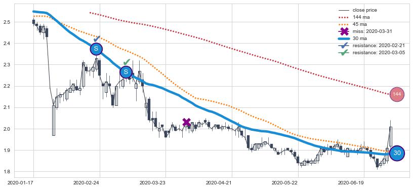 ⚁ MA60和MA90走势平行,且始终保持在短距离内,MA120始终在短中期均线上方,与短中期均线保持一定的距离,微微下行