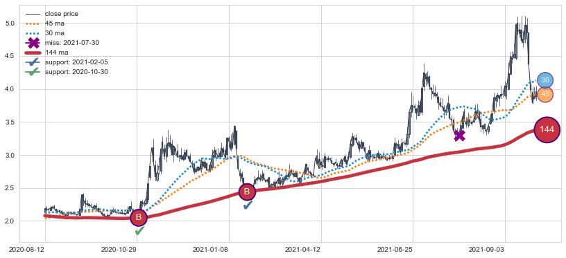 ⚅ 短期均线MA8上穿中期均线MA21形成的交叉是标准 黄金交叉